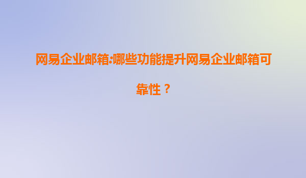 2025-08-13網(wǎng)易企業(yè)郵箱的高可靠性功能解析 網(wǎng)易企業(yè)郵箱作為國內(nèi)領(lǐng)先的企業(yè)級郵件服務(wù)提供商,憑借多項核心功能和技術(shù)優(yōu)勢,顯著提升了系統(tǒng)的穩(wěn)定性和可靠性,為企業(yè)用戶提供安全高效的通信保障。以下從多個維度解析其關(guān)鍵功...
