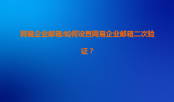 2025-08-10網(wǎng)易企業(yè)郵箱:如何設(shè)置網(wǎng)易企業(yè)郵箱二次驗(yàn)證? 前言:企業(yè)郵箱的安全重要性 在數(shù)字化辦公時(shí)代,企業(yè)郵箱承載著大量敏感信息和重要業(yè)務(wù)往來(lái)。網(wǎng)易企業(yè)郵箱作為國(guó)內(nèi)領(lǐng)先的企業(yè)通信解決方案,不...