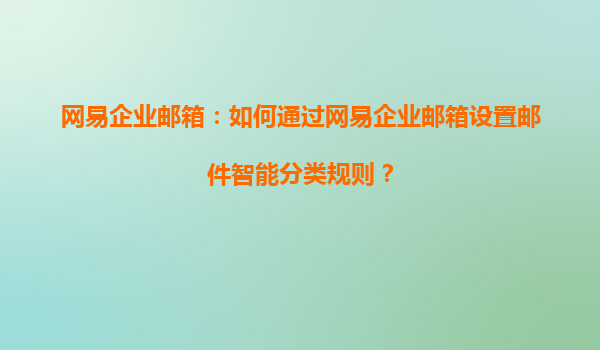 2025-08-09網(wǎng)易企業(yè)郵箱:如何通過(guò)網(wǎng)易企業(yè)郵箱設(shè)置郵件智能分類規(guī)則? 一、網(wǎng)易企業(yè)郵箱的優(yōu)勢(shì) 網(wǎng)易企業(yè)郵箱作為國(guó)內(nèi)領(lǐng)先的企業(yè)級(jí)郵箱服務(wù)提供商,憑借其穩(wěn)定、安全、高效的特點(diǎn),贏得了眾多企業(yè)的青睞。以下是網(wǎng)易...