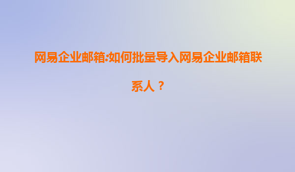 4008-020-360 網(wǎng)易企業(yè)郵箱:高效管理聯(lián)系人的批量導(dǎo)入功能 網(wǎng)易企業(yè)郵箱的商務(wù)溝通優(yōu)勢(shì) 作為國(guó)內(nèi)領(lǐng)先的企業(yè)級(jí)郵箱服務(wù)商,網(wǎng)易企業(yè)郵箱憑借穩(wěn)定的系統(tǒng)架構(gòu)、專業(yè)的安全防護(hù)以及人性化的功能設(shè)計(jì),成為眾多企業(yè)的首選。...