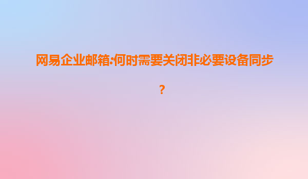 2025-07-14網(wǎng)易企業(yè)郵箱:何時需要關(guān)閉非必要設(shè)備同步? 在企業(yè)管理中,郵箱作為重要的通訊工具,其安全與效率至關(guān)重要。網(wǎng)易企業(yè)郵箱憑借其高效的協(xié)同辦公能力與多重防護機制,成為許多企業(yè)的首選。然而,隨著多設(shè)備...