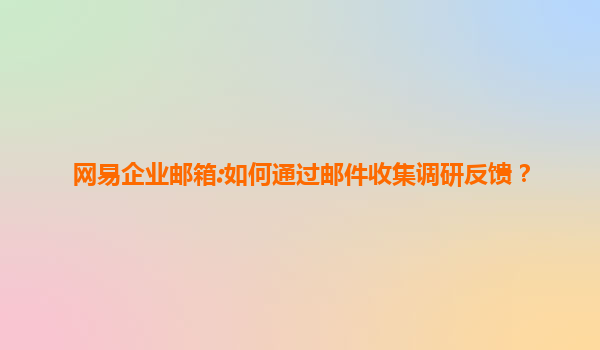 2025-07-15網(wǎng)易企業(yè)郵箱助力高效收集調(diào)研反饋 在企業(yè)管理中,調(diào)研反饋是了解客戶需求、優(yōu)化產(chǎn)品服務(wù)、提升員工滿意度的重要途徑。而高效的調(diào)研反饋收集離不開可靠的工具支持。網(wǎng)易企業(yè)郵箱憑借其強大的功能和穩(wěn)定性,成為企業(yè)...