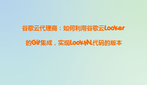 谷歌云代理商:如何利用谷歌云的Looker Git集成實現(xiàn)LookML代碼版本控制