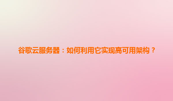 如何利用谷歌云服務(wù)器構(gòu)建高可用架構(gòu)