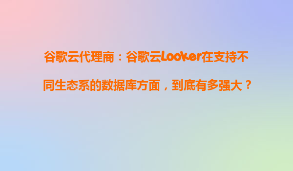 2025-10-23谷歌云代理商:谷歌云Looker在支持不同生態(tài)系的數(shù)據(jù)庫方面到底有多強大? 引言 在當今數(shù)據(jù)驅(qū)動的商業(yè)環(huán)境中,企業(yè)需要一種靈活、高效的數(shù)據(jù)分析工具來整合不同生態(tài)系統(tǒng)的數(shù)據(jù)庫,并從中提取有價值的洞...