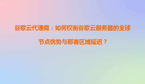 4008-020-360 谷歌云代理商:如何權(quán)衡谷歌云服務(wù)器的全球節(jié)點(diǎn)優(yōu)勢(shì)與部署區(qū)域延遲? 一、谷歌云的全球節(jié)點(diǎn)優(yōu)勢(shì)解析 谷歌云(GoogleCloudPlatform,GCP)擁有覆蓋全球的26個(gè)云區(qū)域和79個(gè)可用區(qū),其基礎(chǔ)設(shè)施網(wǎng)絡(luò)遍布北美...