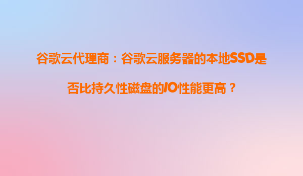2025-10-19谷歌云代理商:谷歌云服務(wù)器的本地SSD是否比持久性磁盤的IO性能更高? 引言 在云計算領(lǐng)域,存儲性能是影響應(yīng)用程序運行效率的關(guān)鍵因素之一。谷歌云平臺(GoogleCloudPlatform,GCP)提供了多種存儲選項...