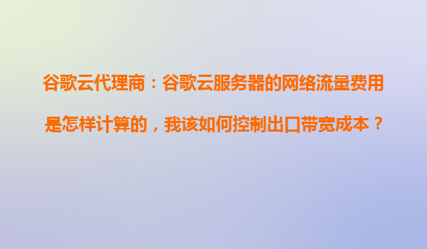 2025-10-17谷歌云代理商:谷歌云服務(wù)器的網(wǎng)絡(luò)流量費(fèi)用是怎樣計(jì)算的,我該如何控制出口帶寬成本? 一、谷歌云的網(wǎng)絡(luò)流量費(fèi)用計(jì)算方式 谷歌云的網(wǎng)絡(luò)流量費(fèi)用主要基于數(shù)據(jù)出口方向、目標(biāo)地域和傳輸量計(jì)算。以下是核心計(jì)...