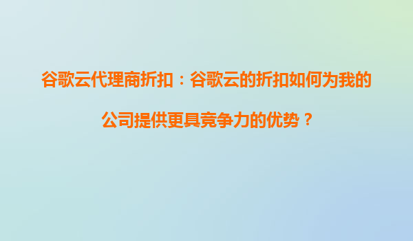谷歌云代理商折扣:如何為您的公司提供更具競爭力的優(yōu)勢?
