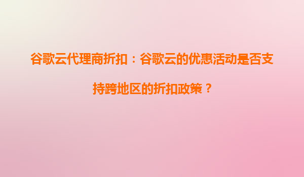 谷歌云代理商折扣:谷歌云的優(yōu)惠活動(dòng)是否支持跨地區(qū)的折扣政策?