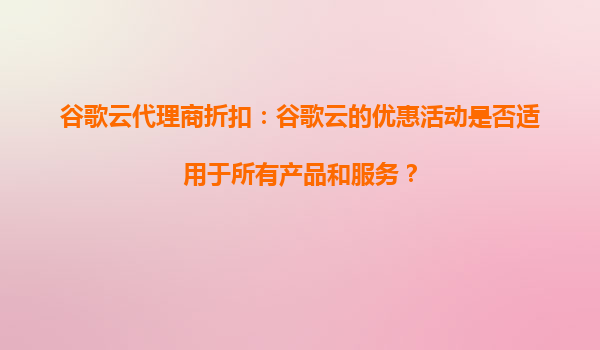 谷歌云代理商折扣:谷歌云的優(yōu)惠活動(dòng)是否適用于所有產(chǎn)品和服務(wù)?