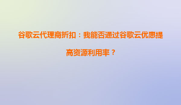 通過谷歌云代理商折扣優(yōu)化資源利用率