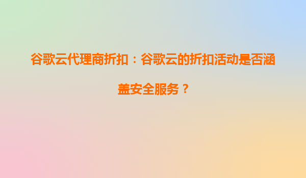 谷歌云代理商折扣:谷歌云的折扣活動(dòng)是否涵蓋安全服務(wù)?