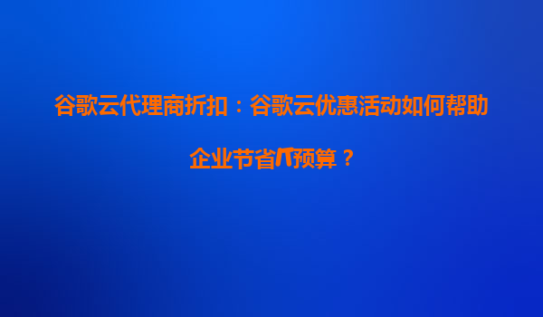 谷歌云代理商折扣:如何通過(guò)優(yōu)惠活動(dòng)優(yōu)化企業(yè)IT預(yù)算