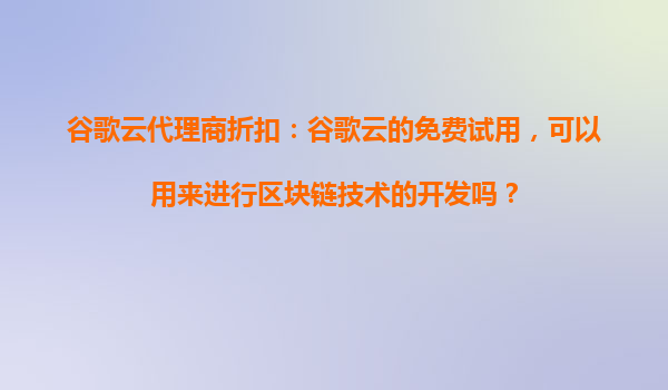谷歌云代理商折扣:谷歌云免費(fèi)試用支持區(qū)塊鏈技術(shù)開發(fā)嗎?