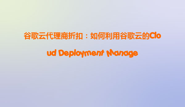 谷歌云代理商折扣:如何利用谷歌云的Cloud Deployment Manager,以成本最優(yōu)的方式部署資源?