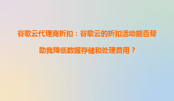 4008-020-360 谷歌云代理商折扣:谷歌云的折扣活動(dòng)能否幫助我降低數(shù)據(jù)存儲和處理費(fèi)用? 一、引言 在當(dāng)今數(shù)字化時(shí)代,企業(yè)對于數(shù)據(jù)存儲和處理的需求急劇增長。無論是初創(chuàng)公司還是大型企業(yè),高效的云計(jì)算服務(wù)已成為業(yè)務(wù)發(fā)...