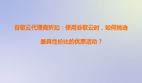 2025-09-16谷歌云代理商折扣:如何挑選最具性價(jià)比的優(yōu)惠活動(dòng)? 一、谷歌云的核心優(yōu)勢 在選擇云服務(wù)提供商時(shí),谷歌云(GoogleCloudPlatform,GCP)憑借以下優(yōu)勢成為眾多企業(yè)的首選...