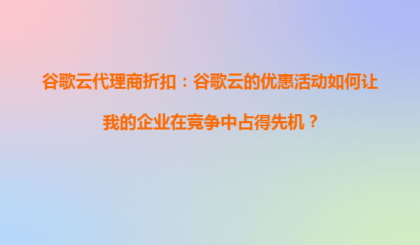 2025-09-16谷歌云代理商折扣:谷歌云的優(yōu)惠活動(dòng)如何讓我的企業(yè)在競爭中占得先機(jī)? 在當(dāng)今數(shù)字化時(shí)代,云計(jì)算已成為企業(yè)提升效率、降低成本和加速創(chuàng)新的核心工具。谷歌云(GoogleCloud)作為全球領(lǐng)先的云計(jì)算服務(wù)提供商之...