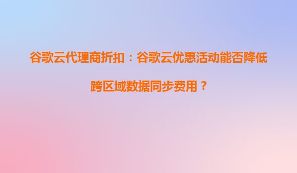 2025-09-16谷歌云代理商折扣:谷歌云優(yōu)惠活動能否降低跨區(qū)域數(shù)據(jù)同步費用? 引言 隨著企業(yè)數(shù)字化轉(zhuǎn)型的加速,越來越多的公司開始將業(yè)務遷移到云端。谷歌云(GoogleCloudPlatform,GCP)作為全球領先的云計算服務提供商...