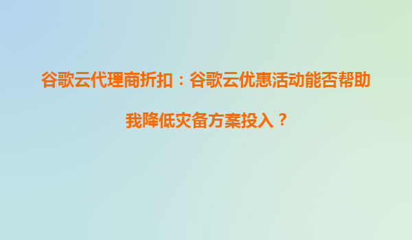 2025-09-16谷歌云代理商折扣:谷歌云優(yōu)惠活動(dòng)能否幫助我降低災(zāi)備方案投入? 引言 在數(shù)字化轉(zhuǎn)型的浪潮下,企業(yè)對(duì)災(zāi)難恢復(fù)(DisasterRecovery,DR)和業(yè)務(wù)連續(xù)性(BusinessContinuity,BC...