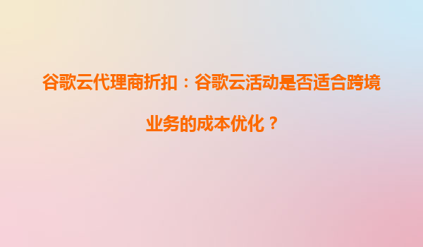 2025-09-16谷歌云代理商折扣:谷歌云活動(dòng)是否適合跨境業(yè)務(wù)的成本優(yōu)化? 一、谷歌云的核心優(yōu)勢(shì) 谷歌云(GoogleCloud)作為全球領(lǐng)先的云計(jì)算服務(wù)提供商,憑借其強(qiáng)大的基礎(chǔ)設(shè)施和創(chuàng)新能力,為跨境業(yè)務(wù)提供了多方面的支持: ...