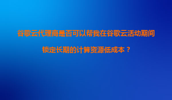 2025-11-05谷歌云代理商是否能在活動期間鎖定長期計(jì)算資源低成本?深度解析 一、谷歌云的核心優(yōu)勢與資源定價(jià)機(jī)制 要回答這個(gè)問題,首先需要了解谷歌云的三大核心定價(jià)優(yōu)勢: 承諾使用折扣(CommittedUseDiscounts...