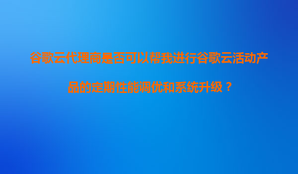 2025-11-05谷歌云代理商是否能提供定期性能調(diào)優(yōu)與系統(tǒng)升級服務(wù)? 一、谷歌云代理商的核心服務(wù)范圍 谷歌云官方代理商通常提供包括技術(shù)咨詢、資源采購、賬單優(yōu)化等基礎(chǔ)服務(wù),部分具備技術(shù)實(shí)力的代理商還提供增值服...