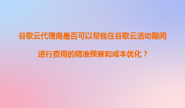 2025-11-05谷歌云代理商如何助力活動期間精準(zhǔn)預(yù)算與成本優(yōu)化 在數(shù)字化轉(zhuǎn)型浪潮中,企業(yè)上云已成為提升競爭力的關(guān)鍵。作為全球領(lǐng)先的云服務(wù)提供商,谷歌云以其強(qiáng)大的技術(shù)實(shí)力和靈活的計(jì)費(fèi)模式,為企業(yè)提供了高效、安全的云端解...