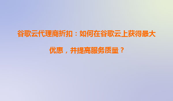 2025-09-16谷歌云代理商折扣:如何通過折扣享受更多云服務(wù)功能 1.了解谷歌云代理商的折扣政策 谷歌云代理商提供的折扣政策是許多用戶優(yōu)化成本的重要途徑之一。通過與官方授權(quán)的代理商合作,您可以享受到比直接購買更...