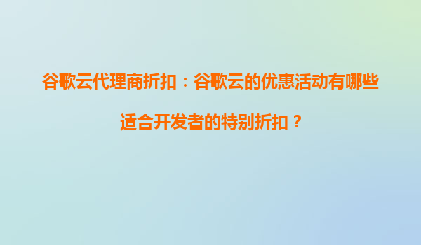 2025-09-16谷歌云代理商折扣:開發(fā)者專屬優(yōu)惠活動全解析 在云計算領(lǐng)域,谷歌云(GoogleCloudPlatform,GCP)憑借強(qiáng)大的基礎(chǔ)設(shè)施、創(chuàng)新的技術(shù)以及開發(fā)者友好的服務(wù),吸引了大量企業(yè)和個人開發(fā)者。對于開發(fā)者而言,選擇谷...