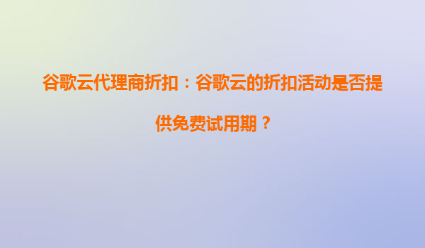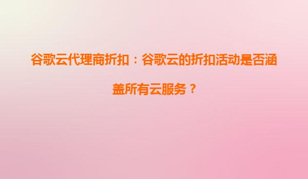 2025-09-05谷歌云代理商折扣:谷歌云的折扣活動(dòng)是否涵蓋所有云服務(wù)? 谷歌云的優(yōu)勢(shì) 谷歌云(GoogleCloudPlatform,簡稱GCP)作為全球領(lǐng)先的云計(jì)算服務(wù)提供商之一,憑借其強(qiáng)大的技術(shù)實(shí)力和豐富的功能,已成為眾多企業(yè)...