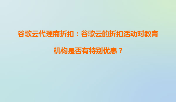 2025-09-05谷歌云代理商折扣:教育機(jī)構(gòu)能否享受特別優(yōu)惠? 一、谷歌云的核心優(yōu)勢(shì)解析 在探討教育機(jī)構(gòu)優(yōu)惠前,需先了解谷歌云的獨(dú)特競爭力: 全球基礎(chǔ)設(shè)施:25個(gè)區(qū)域和76個(gè)可用區(qū),確保低延遲訪問 ...