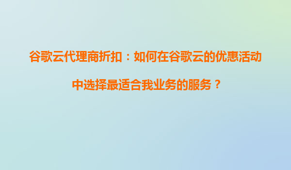 2025-09-04谷歌云代理商折扣:谷歌云的折扣活動(dòng)是否可以與其他服務(wù)結(jié)合使用? 在數(shù)字化轉(zhuǎn)型的浪潮中,云計(jì)算已成為企業(yè)提升效率、降低成本的首選方案之一。作為全球領(lǐng)先的云服務(wù)提供商,谷歌云(GoogleCloud)以其...