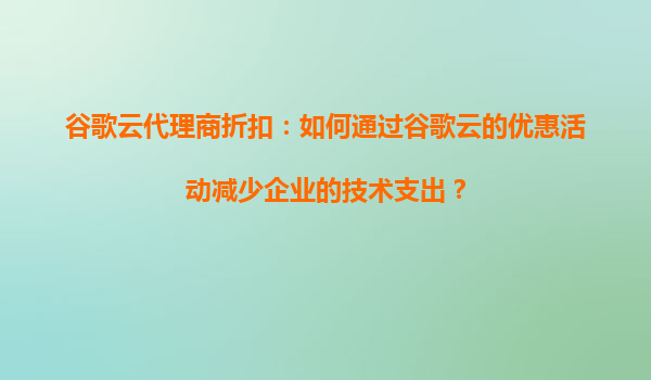 4008-020-360 谷歌云代理商折扣:如何通過(guò)谷歌云的優(yōu)惠活動(dòng)減少企業(yè)的技術(shù)支出? 一、谷歌云的核心優(yōu)勢(shì)與企業(yè)價(jià)值 谷歌云(GoogleCloudPlatform,GCP)作為全球領(lǐng)先的云服務(wù)提供商,為企業(yè)提供了高性能、安全可靠...