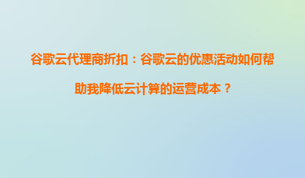 2025-09-04谷歌云代理商折扣:如何通過(guò)優(yōu)惠活動(dòng)降低云計(jì)算運(yùn)營(yíng)成本 1.谷歌云的核心競(jìng)爭(zhēng)優(yōu)勢(shì) 谷歌云作為全球領(lǐng)先的云計(jì)算服務(wù)平臺(tái),擁有強(qiáng)大的基礎(chǔ)設(shè)施和技術(shù)支持。其遍布全球的數(shù)據(jù)中心網(wǎng)絡(luò)確保了服務(wù)的高可用性和低...