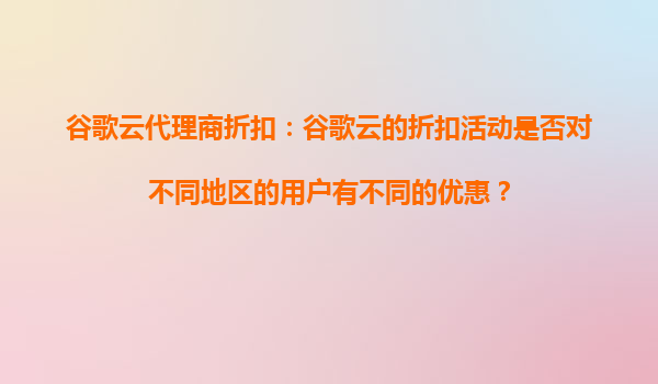 4008-020-360 谷歌云代理商折扣:地區(qū)差異化優(yōu)惠與優(yōu)勢(shì)解析 引言 在全球云計(jì)算市場(chǎng)競(jìng)爭(zhēng)日益激烈的今天,谷歌云(GoogleCloudPlatform,GCP)通過(guò)靈活的定價(jià)策略和區(qū)域化運(yùn)營(yíng)體系,為不同地區(qū)的用戶提供差異化的折扣活動(dòng)。同時(shí)...