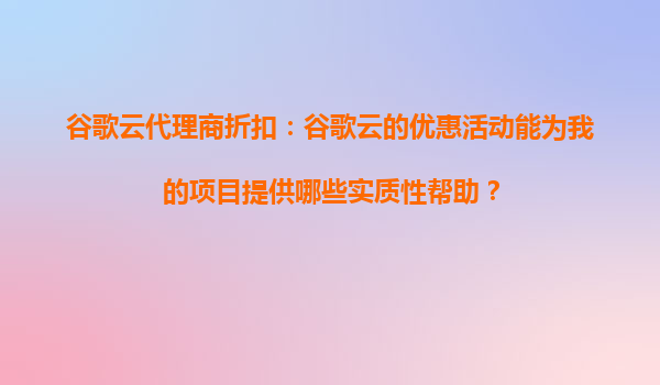2025-09-02谷歌云代理商折扣:谷歌云的優(yōu)惠活動能為我的項目提供哪些實質(zhì)性幫助? 一、谷歌云的優(yōu)勢:為何選擇谷歌云作為項目平臺? 在探討代理商折扣帶來的幫助前,首先需要了解谷歌云(GoogleCloudPlatform,GCP...