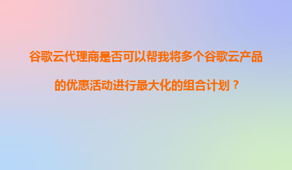 2025-11-04谷歌云代理商如何幫助客戶實現(xiàn)多產(chǎn)品優(yōu)惠組合的最優(yōu)規(guī)劃? 一、谷歌云的核心優(yōu)勢 谷歌云(GoogleCloudPlatform,GCP)作為全球三大云服務(wù)商之一,憑借其獨特...