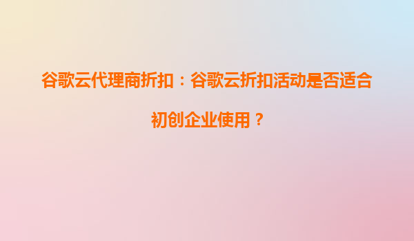 2025-08-29谷歌云代理商折扣:谷歌云折扣活動是否適合初創(chuàng)企業(yè)使用? 一、谷歌云的核心優(yōu)勢 谷歌云(GoogleCloud)作為全球領先的云計算服務提供商,憑借其強大的基礎設...