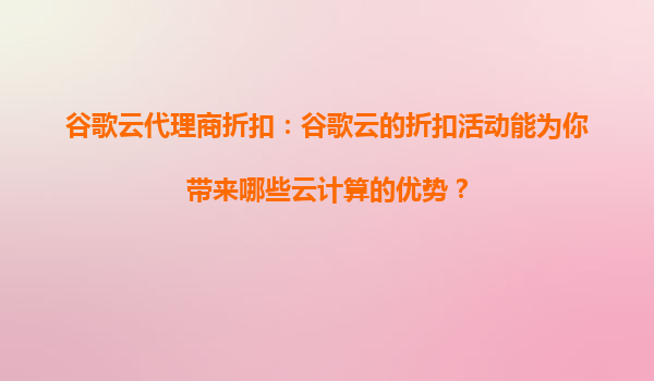 2025-08-28谷歌云代理商折扣:谷歌云的折扣活動能為你帶來哪些云計算的優(yōu)勢? 引言 在當今數字化時代,云計算已成為企業(yè)提升效率、降低成本的核心技術。谷歌云(GoogleCl...