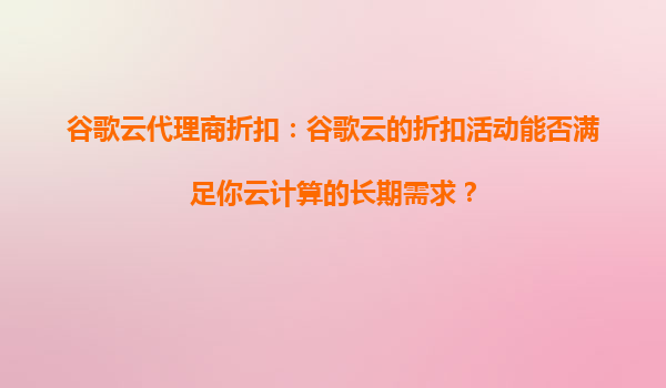 2025-08-27谷歌云代理商折扣:谷歌云的折扣活動能否滿足你云計算的長期需求? 一、谷歌云的核心優(yōu)勢 谷歌云(GoogleCloud)作為全球領先的云計算服務提供商之一,憑借其強大的技術實力和豐富的產(chǎn)品線,為企業(yè)提...