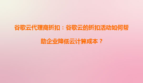 2025-08-26谷歌云代理商折扣:如何通過谷歌云折扣讓云遷移變得更加劃算? 一、谷歌云的核心優(yōu)勢 谷歌云(GoogleCloudPlatform,GCP)作為全球領(lǐng)先的云計算服務(wù)提供商,憑借其強(qiáng)大的技術(shù)實力和全球化基礎(chǔ)設(shè)施,為企...