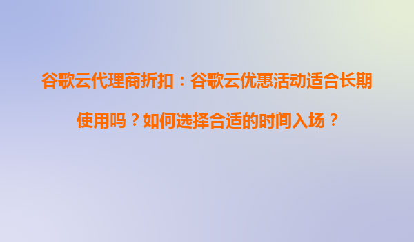2025-08-26谷歌云代理商折扣:長期使用的明智之選 在云計算領(lǐng)域,谷歌云憑借其強(qiáng)大的技術(shù)實力和全球化的基礎(chǔ)設(shè)施,成為眾多企業(yè)和開發(fā)者的首選。通過代理商提供的折扣和優(yōu)惠活動,用戶可以進(jìn)一步降低使用成本。那么,谷歌...