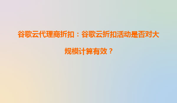 4008-020-360 谷歌云代理商折扣:谷歌云折扣活動(dòng)是否對(duì)大規(guī)模計(jì)算有效? 在當(dāng)今數(shù)字化時(shí)代,云計(jì)算已成為企業(yè)IT基礎(chǔ)設(shè)施的核心組成部分。谷歌云(GoogleCloud)作為全球領(lǐng)先的云服務(wù)提供商之一,憑借其強(qiáng)大的技術(shù)實(shí)力和靈活...