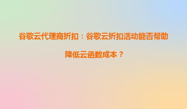 2025-08-25谷歌云代理商折扣:谷歌云折扣活動(dòng)能否幫助降低云函數(shù)成本? 在當(dāng)今數(shù)字化時(shí)代,云計(jì)算已成為企業(yè)IT基礎(chǔ)設(shè)施的核心組成部分。谷歌云(GoogleCloud)作為全球領(lǐng)先的云服務(wù)提供商之一,憑借其強(qiáng)大的技術(shù)實(shí)力和...