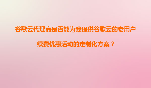 2025-11-04谷歌云代理商能否為您提供老用戶續(xù)費(fèi)優(yōu)惠活動(dòng)的定制化方案? 一、谷歌云代理商的核心價(jià)值 谷歌云官方為直接用戶提供標(biāo)準(zhǔn)化服務(wù),而谷歌云代理商則能在此基礎(chǔ)上,通過(guò)本地化服務(wù)、資源整合和專...