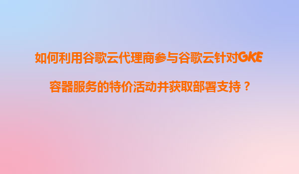 4008-020-360 如何利用谷歌云代理商參與谷歌云針對(duì)GKE容器服務(wù)的特價(jià)活動(dòng)并獲取部署支持? 一、谷歌云(GoogleCloud)的核心優(yōu)勢(shì) 谷歌云作為全球領(lǐng)先的云計(jì)算平臺(tái),憑借其強(qiáng)大的基礎(chǔ)設(shè)施和創(chuàng)新技術(shù),為企...