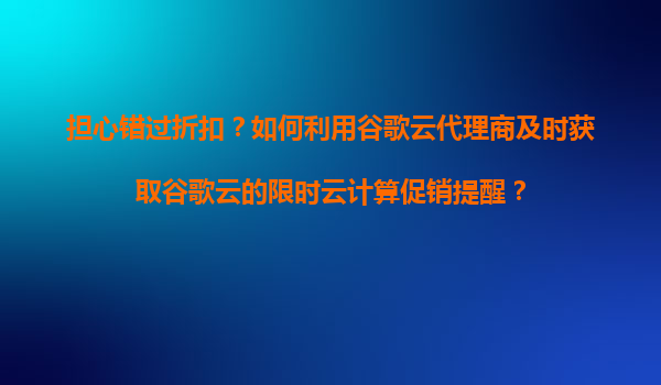 2025-11-03擔(dān)心錯(cuò)過(guò)折扣?如何利用谷歌云代理商及時(shí)獲取谷歌云的限時(shí)云計(jì)算促銷提醒? 谷歌云限時(shí)促銷的價(jià)值與重要性 谷歌云作為全球領(lǐng)先的云計(jì)算平臺(tái),每年會(huì)推出多次限時(shí)促銷活動(dòng),包括新用戶優(yōu)惠、特定產(chǎn)...