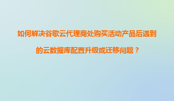 2025-11-04如何高效解決谷歌云代理商處購(gòu)買活動(dòng)產(chǎn)品后遇到的云數(shù)據(jù)庫(kù)配置升級(jí)或遷移問(wèn)題 一、問(wèn)題背景與常見場(chǎng)景 當(dāng)通過(guò)谷歌云代理商購(gòu)買活動(dòng)促銷產(chǎn)品(如限時(shí)折扣實(shí)例)后,用戶可能面臨數(shù)據(jù)庫(kù)配置升級(jí)或遷移的需求。典型場(chǎng)...